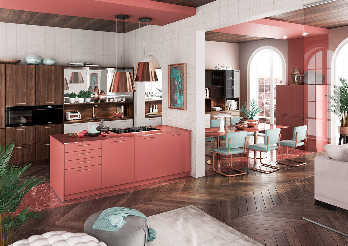 В свою чергу провідні виробники кухонь Німеччини та Італії підлаштовуючись під потреби та запити споживача, почали виробляти меблі не тільки для кухні, а також житлові зони, меблі в пральну кімнату, гардеробні кімнати. Що дає можливість створити гармонійний простір всієї квартири в концепції Моноколор.