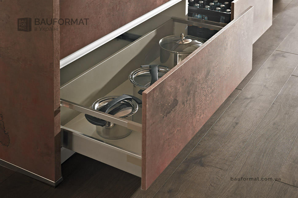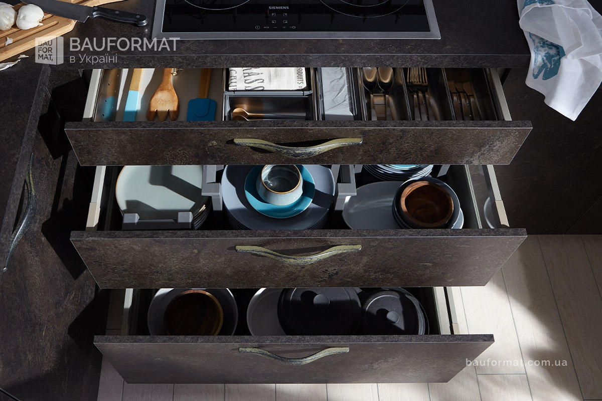 Фасад стійкий до агресивного середовища кухні.