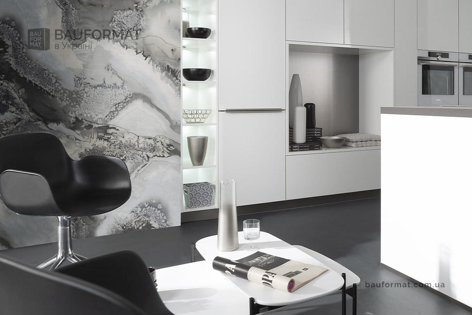Також цей глянцевий фасад використовують в приміщеннях де потрібно візуально збільшити об `єм простору.