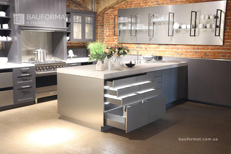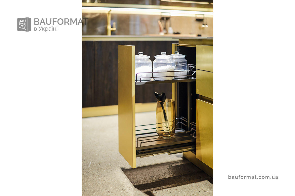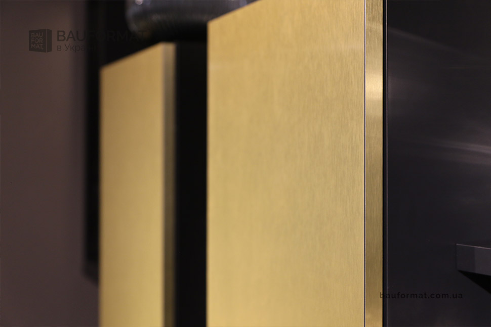 Фасад повторює зовнішній вигляд і фактуру нержавіючої сталі і латуні.