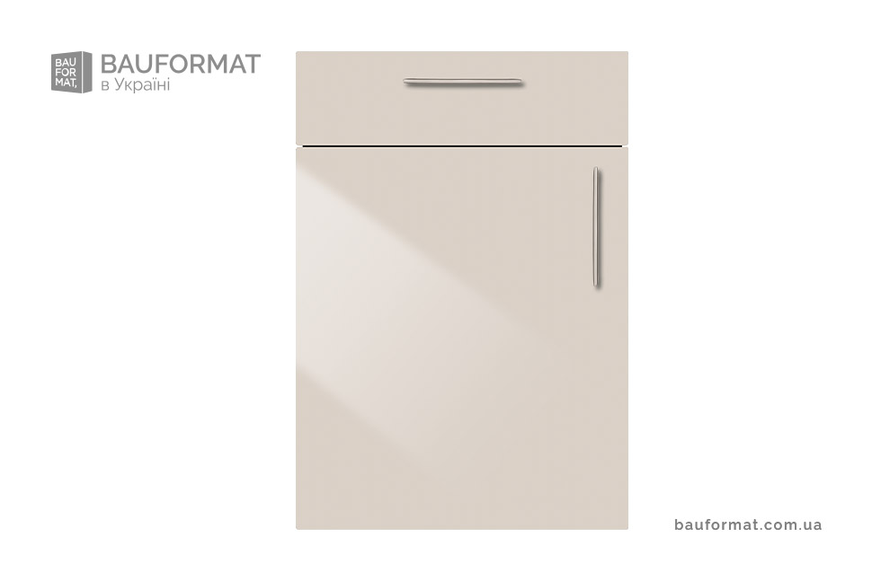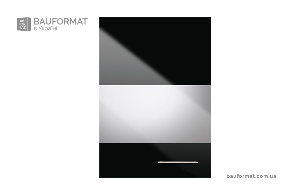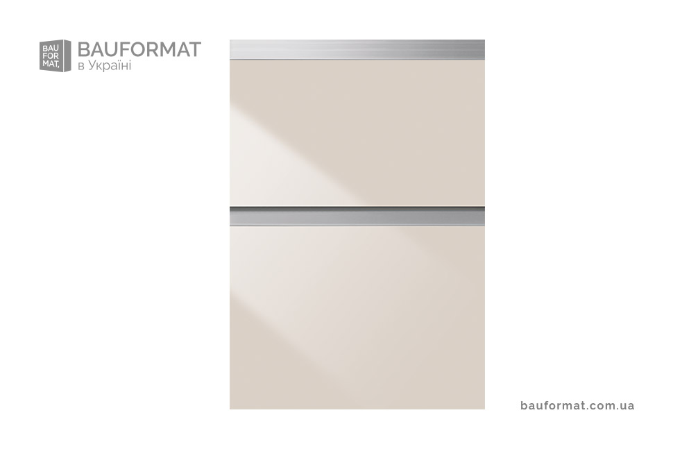 ПВХ кромка приклеєна до фасаду PVU клеем, завдяки чому фасад має високі вологостійкі властивості. Кромка повторює глянцевий колір фасаду.