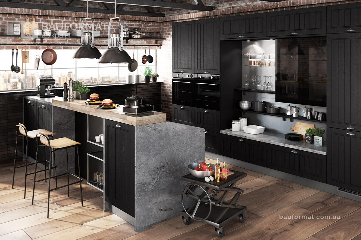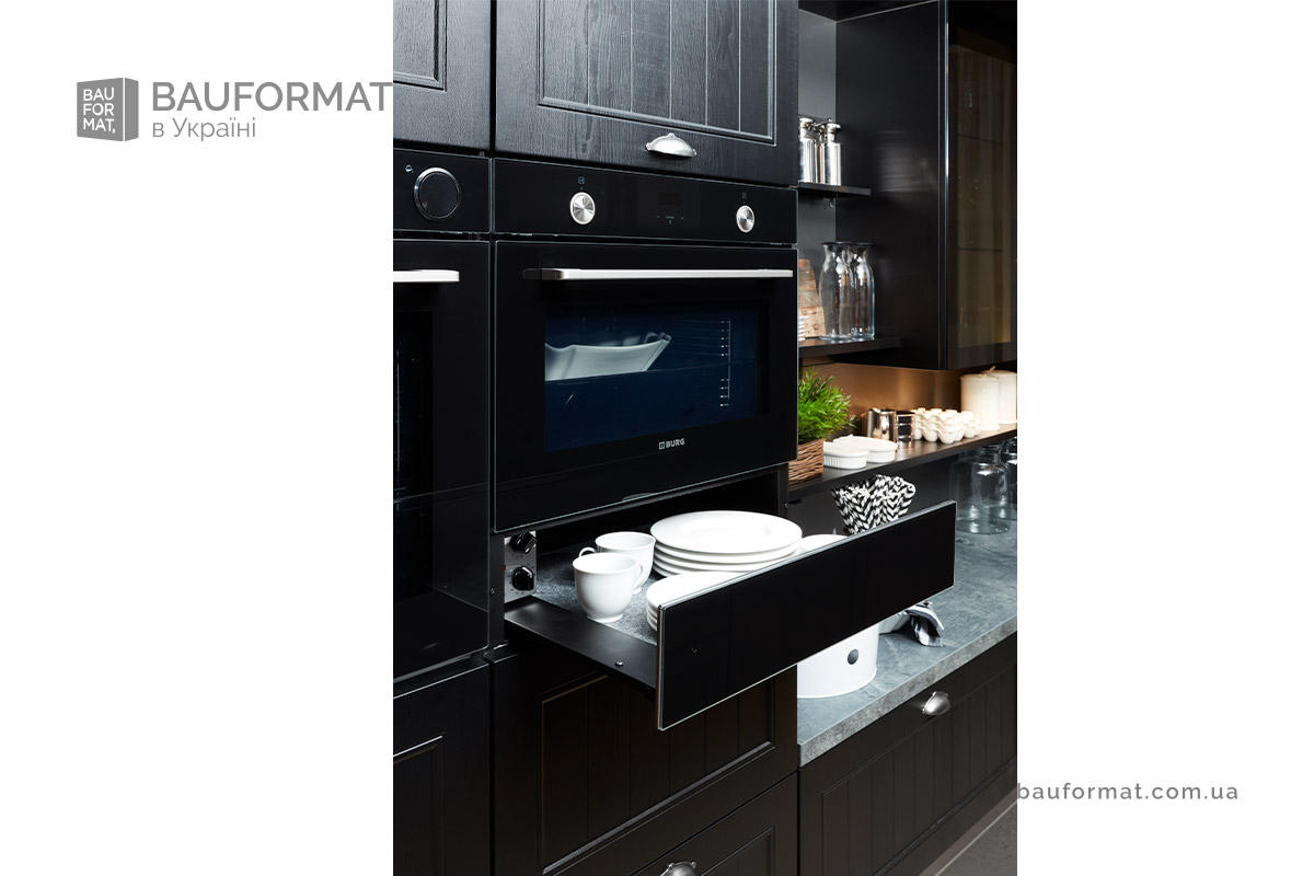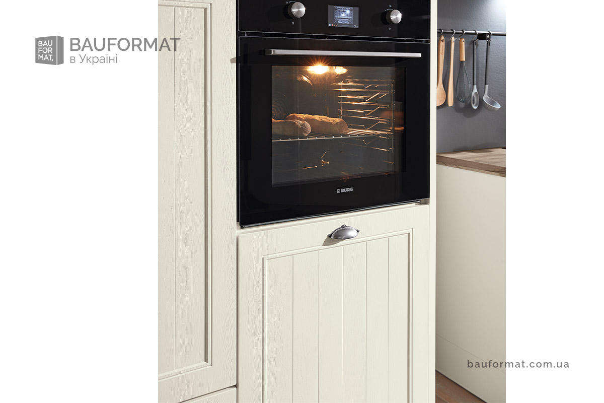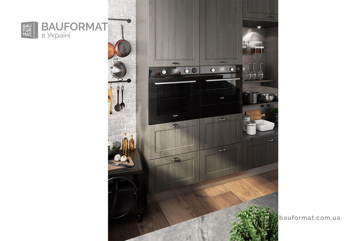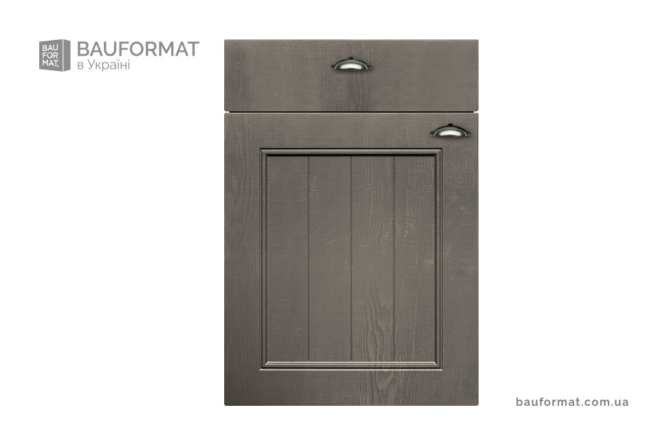 Фасад на основі МДФ покрито ламінатом з структурою що імітує колір та текстуру натурального дерева.