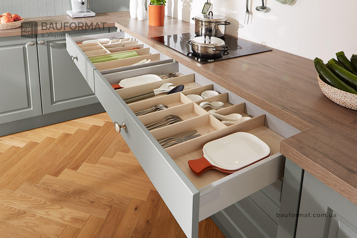 Фасад зроблений з МДФ та покритий шовковисто-матовим лаком в шість шарів з усіх чотирьох сторін фасаду.