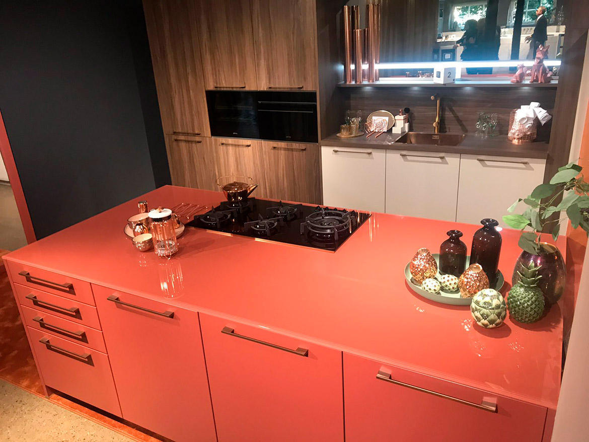 - Матеріал в дизайні можемо використовувати на фасади кухні, стільницю, пристінні панелі, підвіконня, стіни та підлогу. Такі можливості матеріалу надають дизайнерам потенціал в створенні любого інтер’єру не обмежуючи їх креативну концепцію.